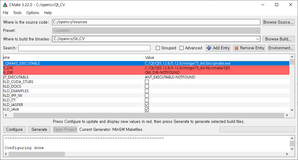 Qt5_DIR : C:/Qt/Qt5.12.6/5.12.6/mingw73_32/lib/cmake/Qt5