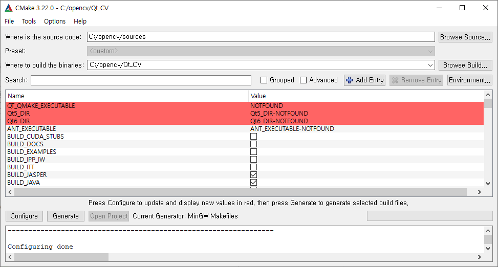 Qt6_DIR은 Qt6를 사용하지 않기 때문에 건들이지 않는다. ( Value 값 그대로 )