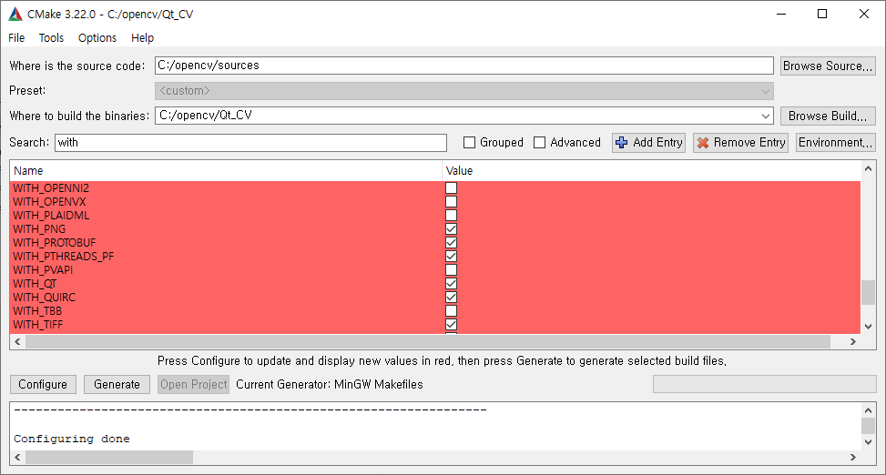 WITH_OPENGL 체크해주기